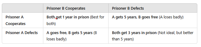 The point of the game is that because you can’t trust your opponent not to seek the most advantageous result for themselves, (defecting and hoping you cooperate), and the exact same thing is true for your opponent, it is always rational for both of you to defect, i.e. betray each other. (Because 3 years in prison is better than 5 years).