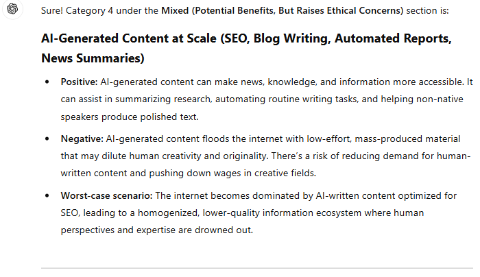 This discussion covers #4 on our list of Mostly Benign to Very Malignant uses of LLMs: