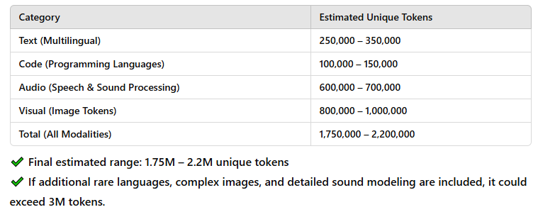In total, all of these tokens make up the LLMs “vocabulary.” ChatGPT and I found a wide range of estimates for total numbers of unique tokens after cleaning: